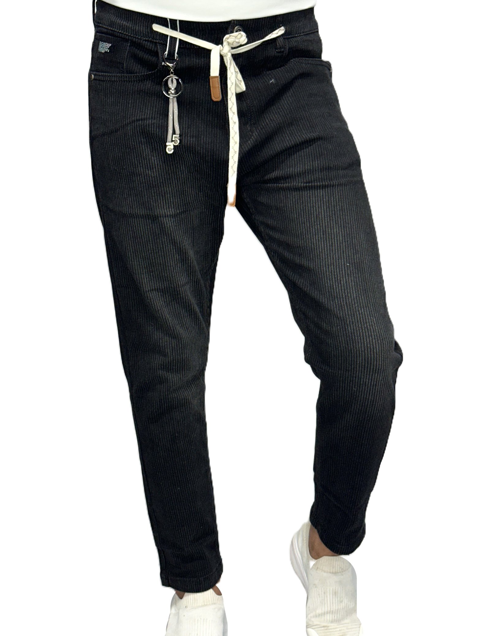 Black Corduroy Ankle-Length Slim Fit Jeans