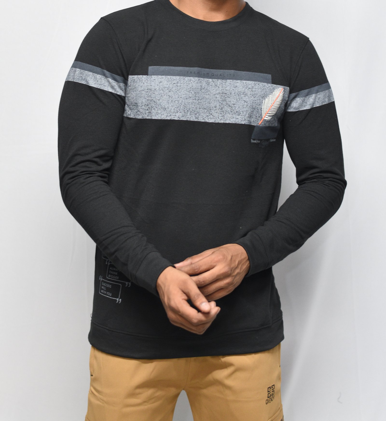 Black long sleeve cotton printed T shirt